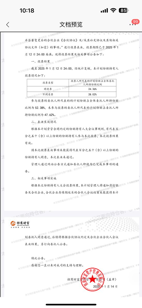更引人关注的是,2024年底基金管理人提出延长两年清算管理期,被投资人表决明确否决。