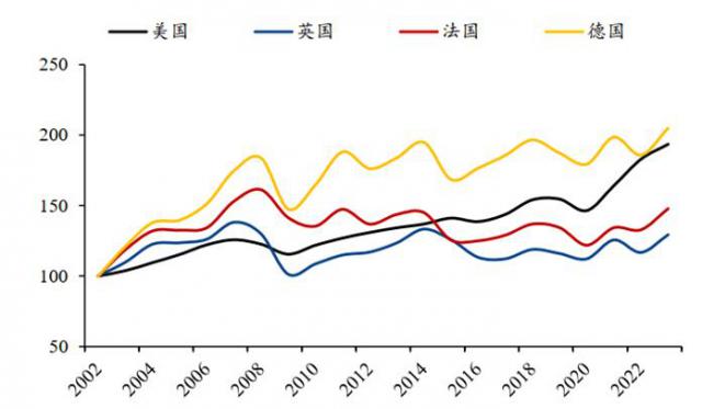 图:美英法德制造业增加值变化 来源:粤开证券